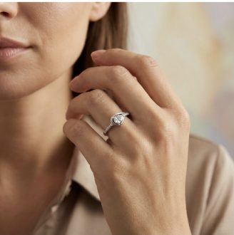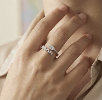 ₹2,000A modern symbol of timeless love. This elegant ring features a pear-shaped diamond embraced by a graceful, fluid band accented with sparkling pavé stones.